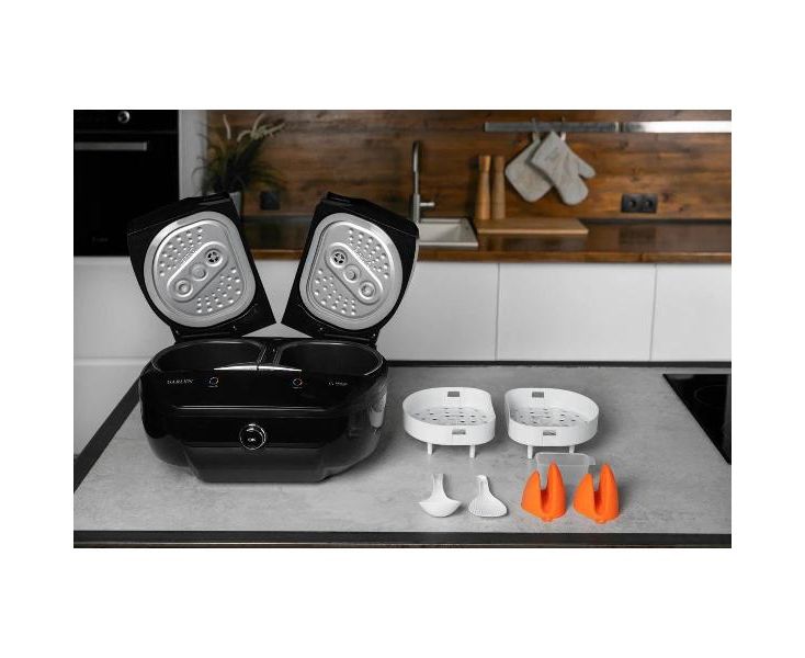 Мультиварка Garlyn MR-Duo 15 позволяет одновременно готовить первое блюдо и десерт. Для этого в устройстве предусмотрено два независимых отделения. Объем чаш составляет 4,5 л и 2 л. Благодаря антипригарному тефлоновому покрытию пища не прилипает и можно готовить с минимальным количеством масла. Чаши при необходимости с легкостью извлекаются для мытья. Встроенный клапан обеспечивает эффективный отвод чрезмерного пара. В конструкции устройства предусмотрен влагосборник.