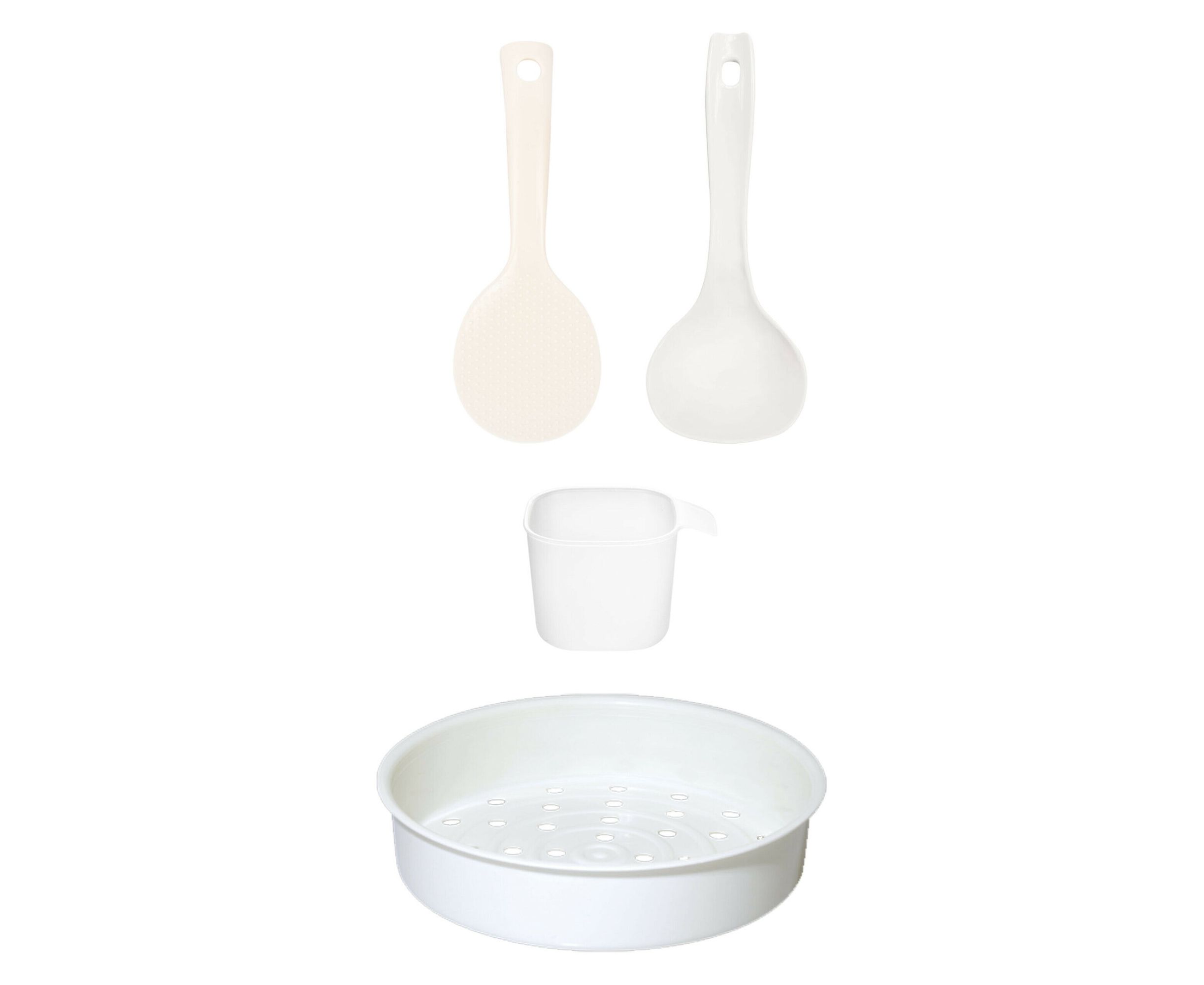 Комплектация: корзина для приготовления на пару, мерный стакан, плоская лопатка, половник, книга рецептов