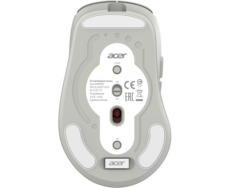 Мышь беспроводная Acer OMR503 (ZL.MCE11.01C) Bluetooth/Радио, оптическая, USB, 3200dpi, светло-серый