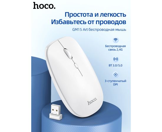Мышь беспроводная HOCO GM15 Art dual-mode business (белый)
