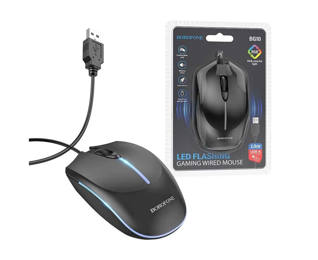 Мышь BOROFONE BG10 Soaring game luminous wired mouse (черный)