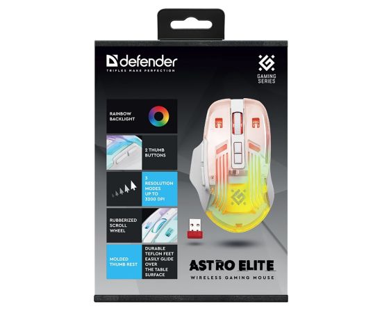 Мышь оптическая беспроводная Defender Astro Elite GM-056 3200dpi, 500мАч игровая (white) (238161)