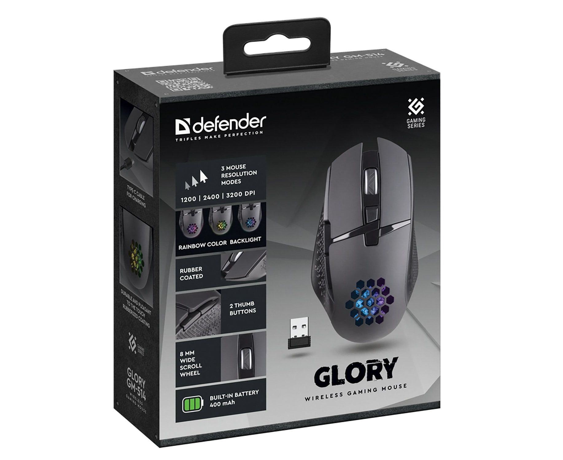 Мышь оптическая беспроводная Defender Glory GM-514 400 мАч,3200dpi, игровая (black) (237339)