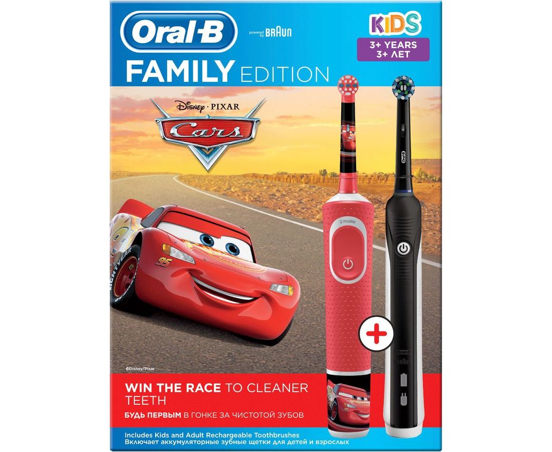 Набор электрических зубных щеток Oral-B Family Edition Pro 1 700+Kids Cars черный/красный