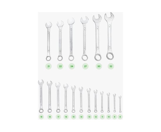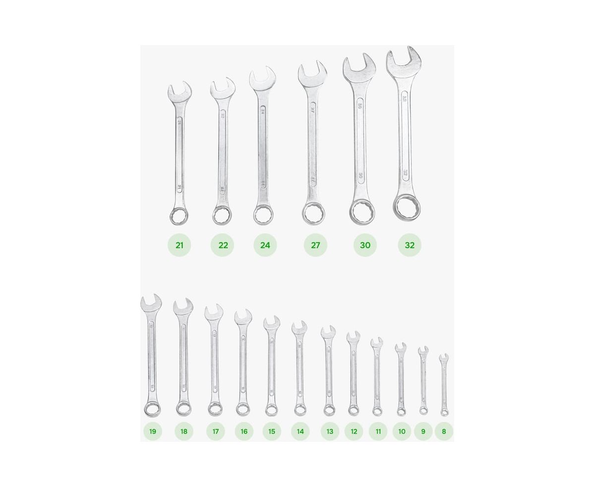 -Ключи 8, 9, 10, 11, 12, 13, 14, 15, 16, 17, 18, 19, 21, 22, 24, 27, 30, 32 мм