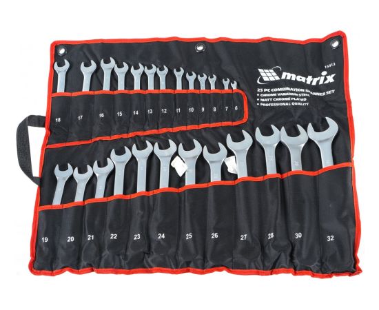 Набор ключей комбинированных MATRIX 15413 6 - 32 мм, 25шт., CrV, матовый хром