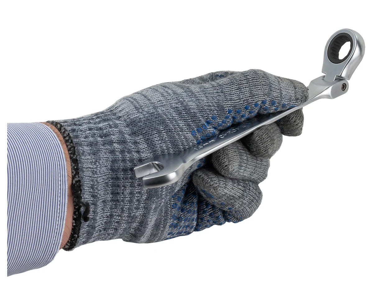 Накидная сторона ключей обеспечивает надежное сцепление и позволяет легко закручивать и выкручивать элементы. Трещоточный механизм увеличивает скорость работы, так как не требует постоянного переставления ключа.