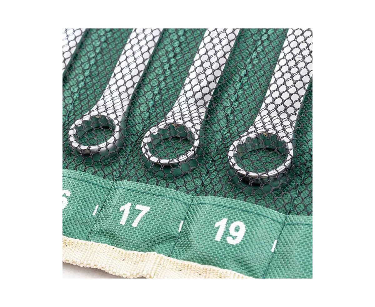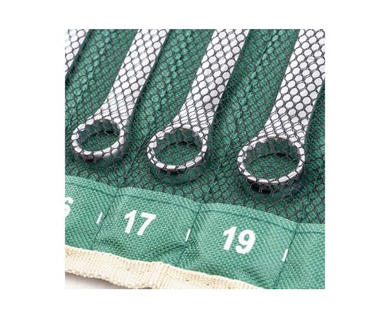 Удобство хранения. В комплект входит специальное полотно-чехол с кармашками под каждый ключ для удобства хранения и перемещения набора ключей. Кроме того, чехол снабжён люверсовыми подвесами для закрепления на стене.