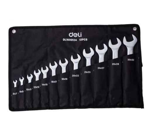 Набор ключей рожковых Deli DL160012 двусторонних 12 шт 6x7, 8x9, 10x11, 12x13, 14x15, 16x17, 18x19, 20x22, 21x23, 24x27, 25x28, 30x32