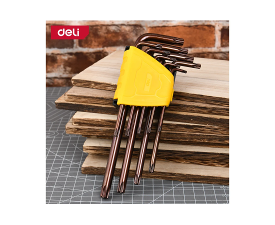 Набор ключей шестигранных Deli DL230708G удлиненных 9шт S2, размеры 1,5,2,2,5,3,4,5,6,8,10мм, пластиковый держатель