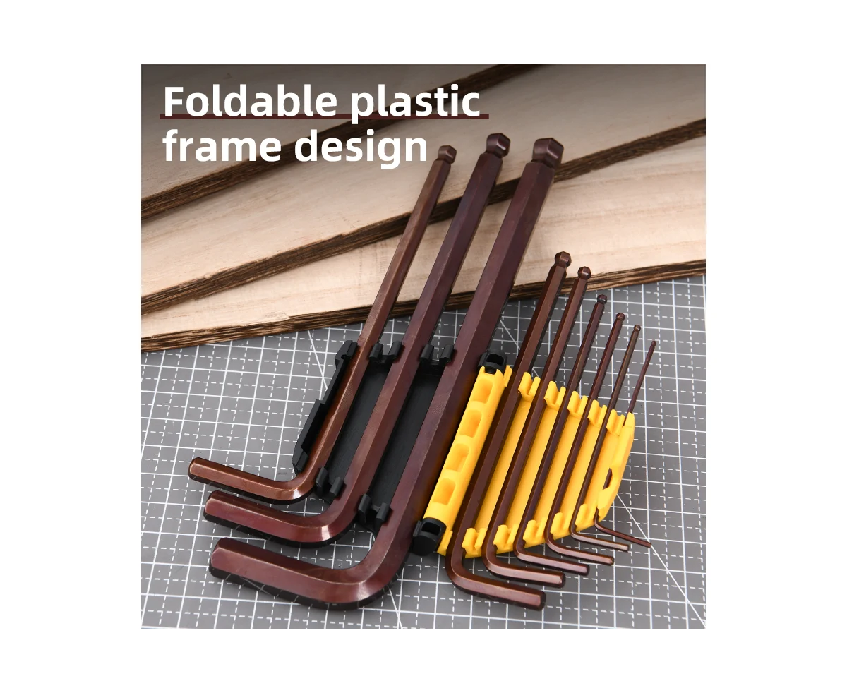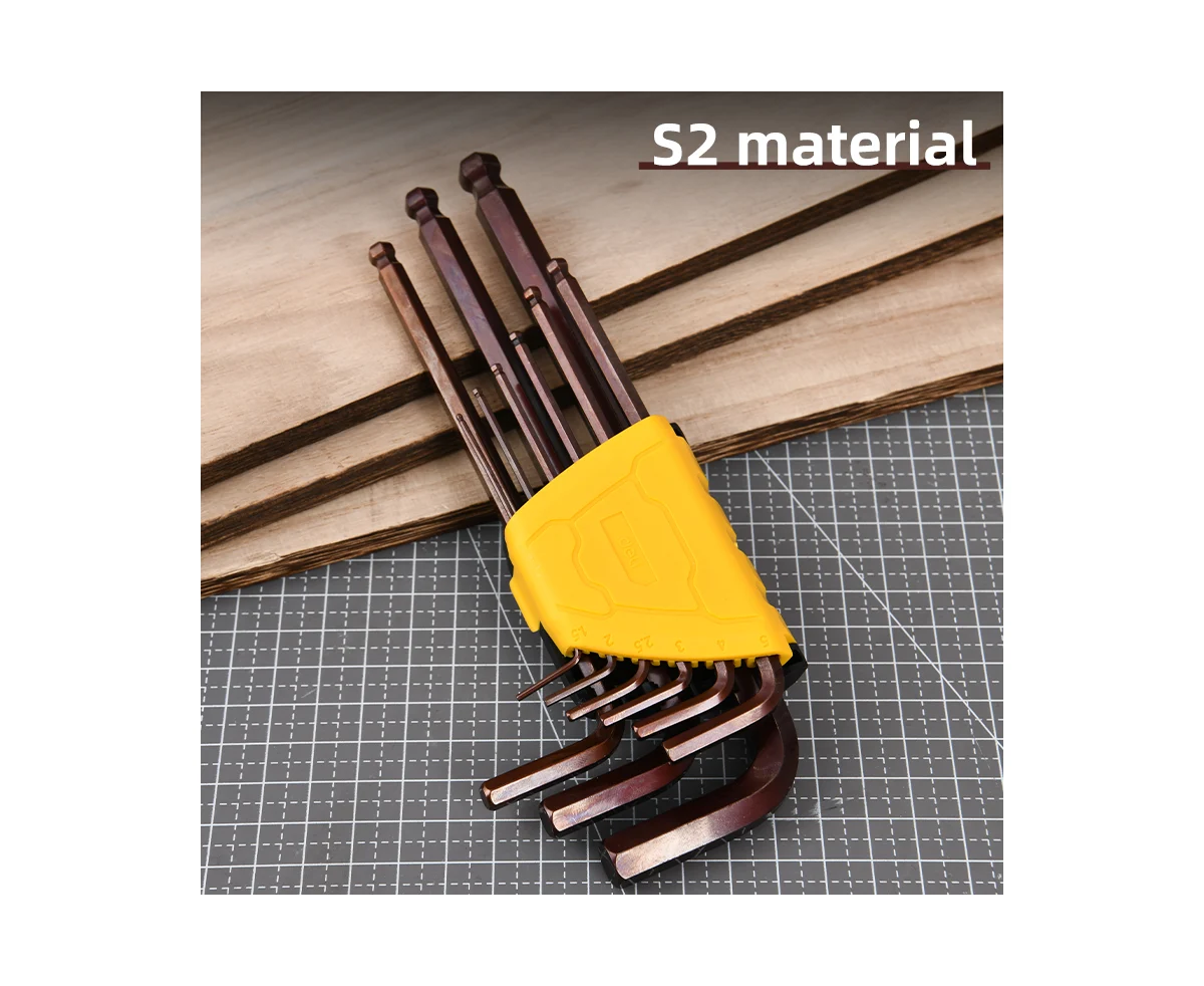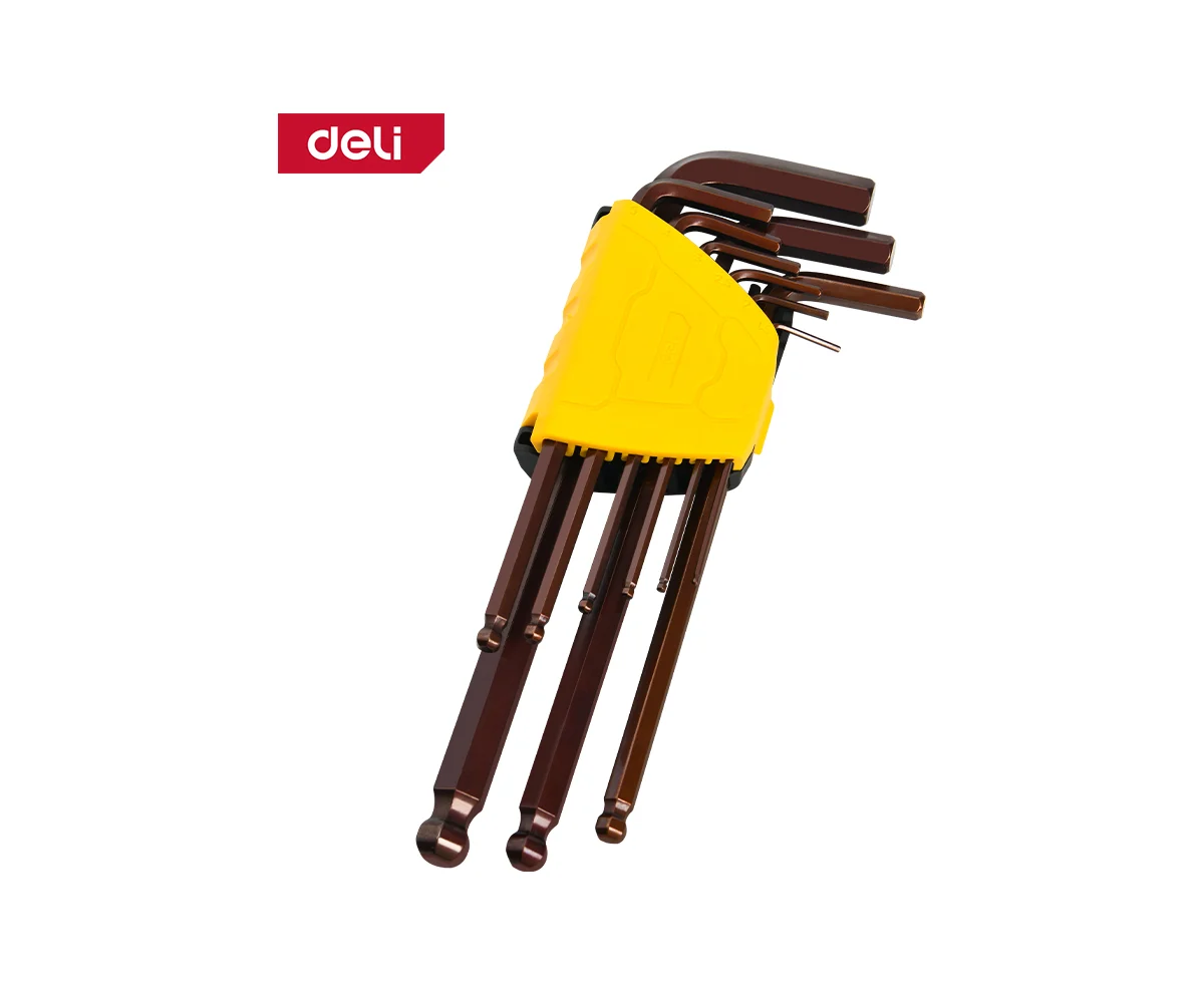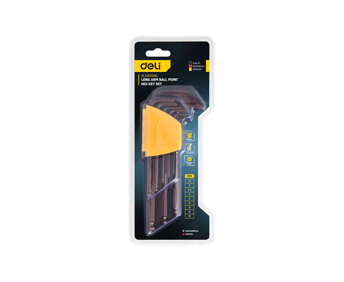 Набор ключей шестигранных Deli DL230709G с шаром удлиненных 9 шт S2, размеры 1,5,2,2,5,3,4,5,6,8,10мм, пластиковый держатель