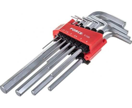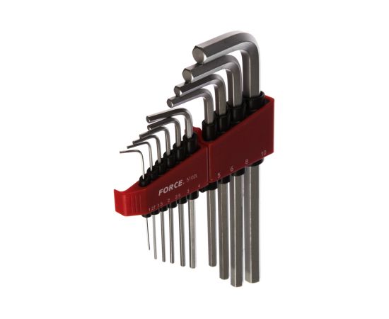 Набор средних Г-образных шестигранников 10 предметов FORCE 5102L подойдет для работы с крепежом любой сложности.