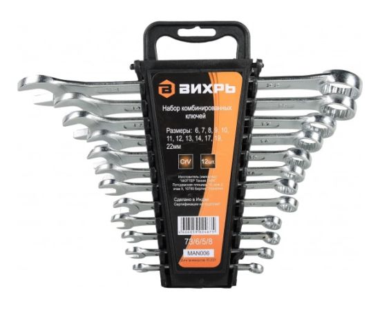 Набор комбинированных ключей 12 шт. 6 - 22 Вихрь 73/6/5/8 используется в быту, на производстве и при проведении любых монтажных работ.