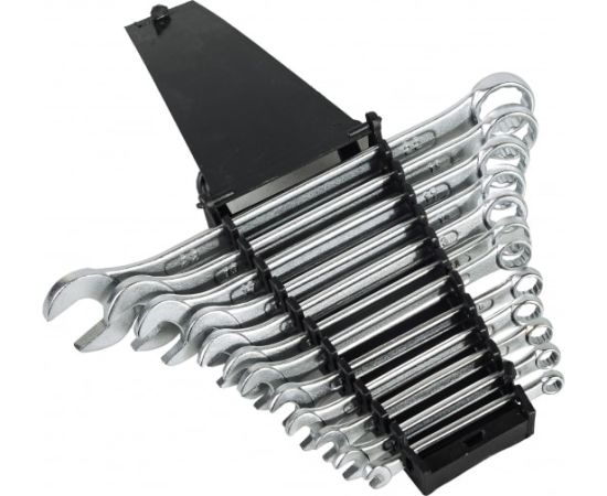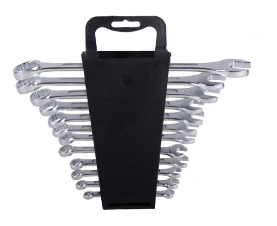 Комплект охватывает наиболее часто используемые размеры. Двенадцатигранная накидная головка обеспечивает плотный охват крепежа.