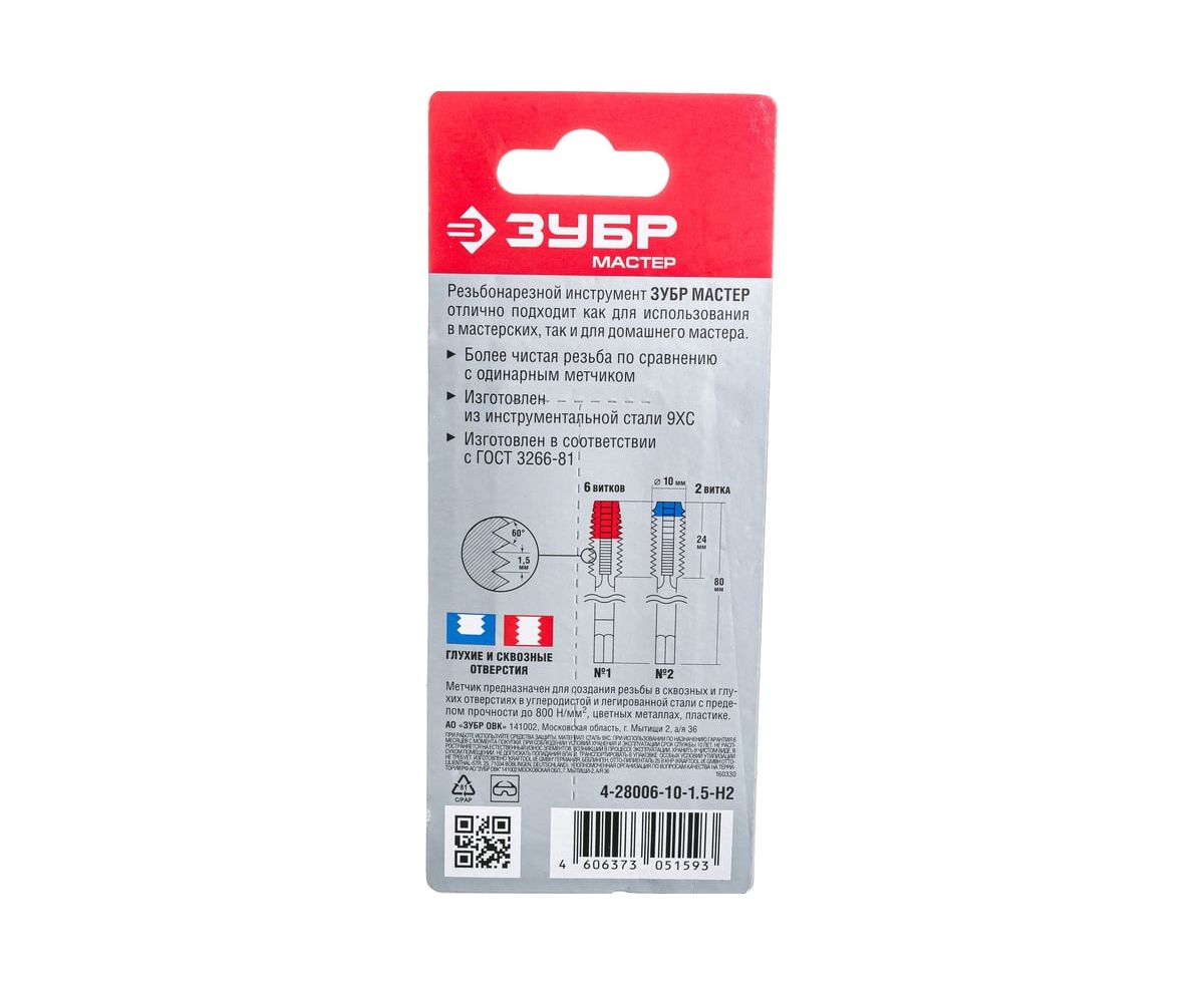 Преимущества набора метчиков ЗУБР 4-28006-10-1.5-H2