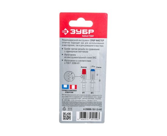 Набор метчиков Зубр Мастер 4-28006-10-1.5-H2 2 предмета