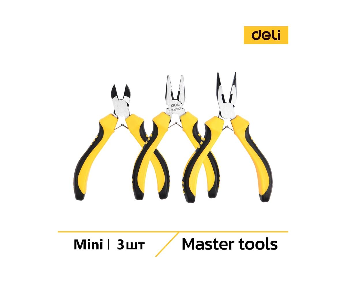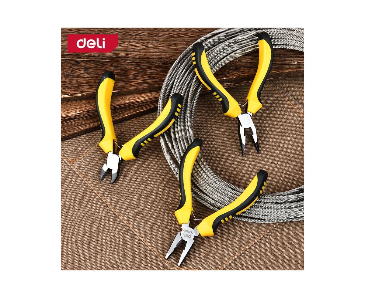 Этот набор мини-плоскогубцев Deli DL103201-3 станет незаменимым помощником как для профессионалов, так и для любителей, занимающихся ремонтом, электроникой, моделированием или любыми другими видами работ, требующими точности, удобства и надежности в использовании инструментов.