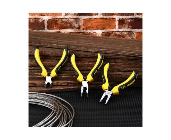 В набор входят комбинированные плоскогубцы длиной 115 мм, удлиненные плоскогубцы длиной 125 мм и бокорезы длиной 110 мм, каждый из которых обладает уникальными особенностями для эффективной работы.