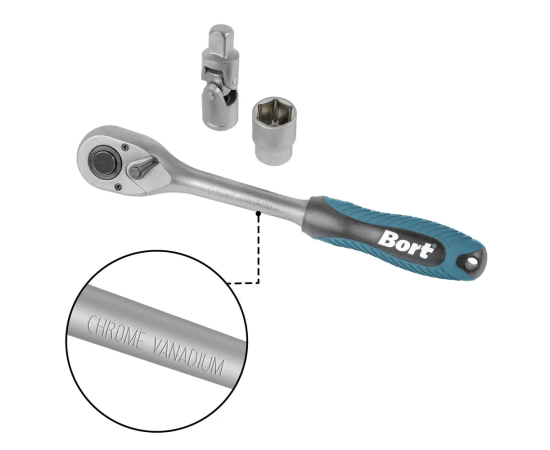 - Рукоятка с трещоткой квадрат 1/2 (1 шт);