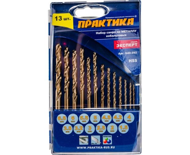 Набор сверл по металлу ПРАКТИКА Эксперт 640-292 кобальтовые 13 шт