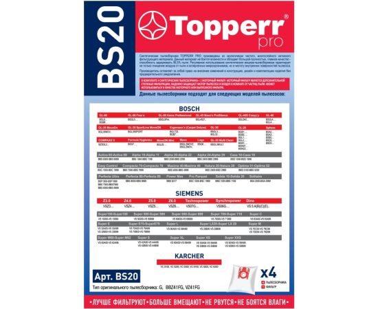 Набор Topperr BS20 1401 для пылесосов Bosch