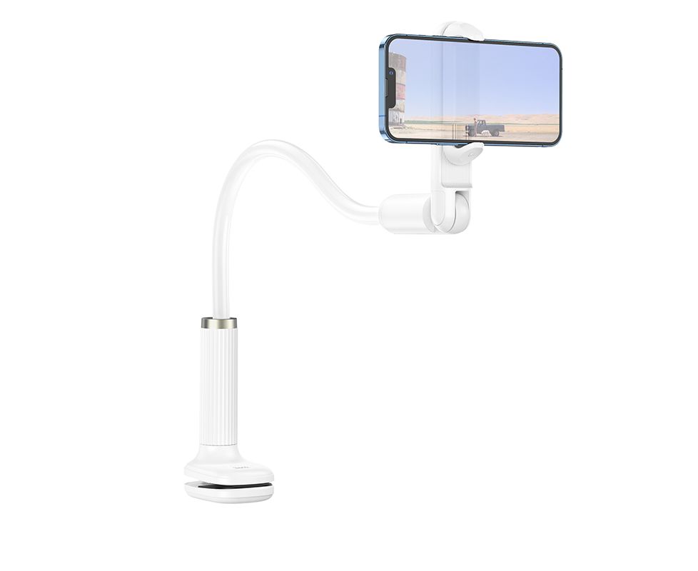 Настольный держатель Hoco HD4 выполнен из надежных материалов, устойчив, безопасн и универсален. Гибкая стойка позволит поворачивать гаджет как вам удобно и зафиксировать его в различном положении для удобства просмотра фильмов, клипов, чтения электронных книг, прослушивания музыки. Благодаря прижимной прищепке/зажиму держатель крепится на любую плоскую поверхность под разным углом, обеспечивая хорошую фиксацию. Гибкий держатель для телефона может использоваться как аксессуар для видео и фотосъемки. Подходит для гаджетов с диагональю 4,5-7 дюймов (диапазон ширины патрона: 58-85 мм).