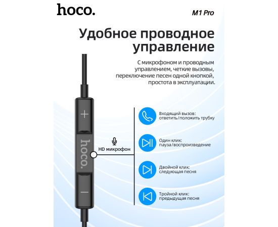 Наушники HOCO M1 Pro Original series earphones (черный)
