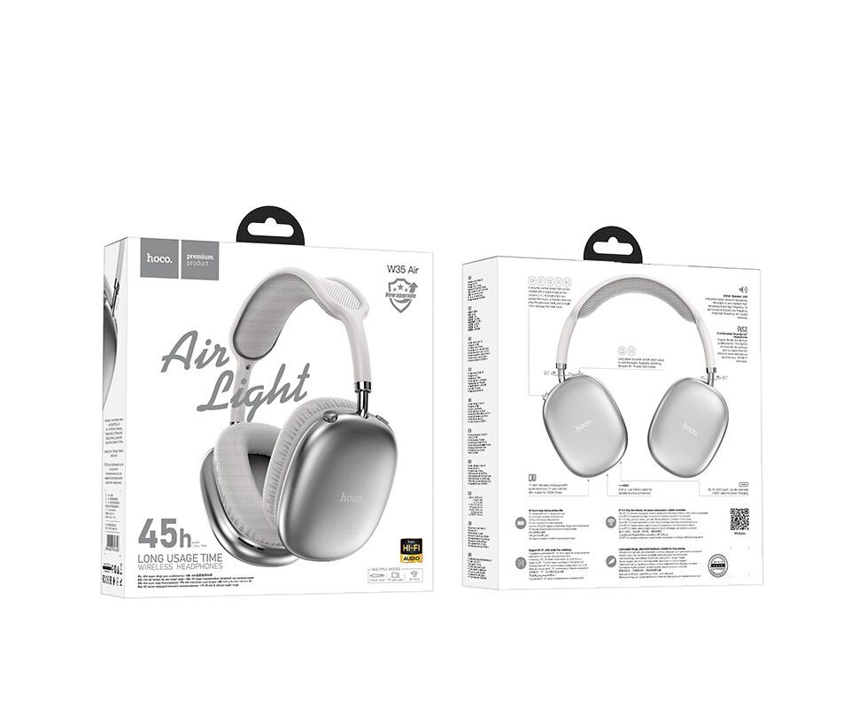 Наушники полноразмерные HOCO W35 Air Triumph, bluetooth 5.3, AUX, цвет: серебряный (1/40)