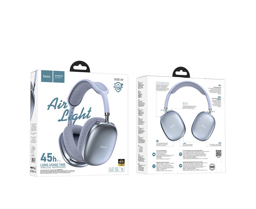 Наушники полноразмерные HOCO W35 Air Triumph, bluetooth 5.3, AUX, цвет: синий (1/40)