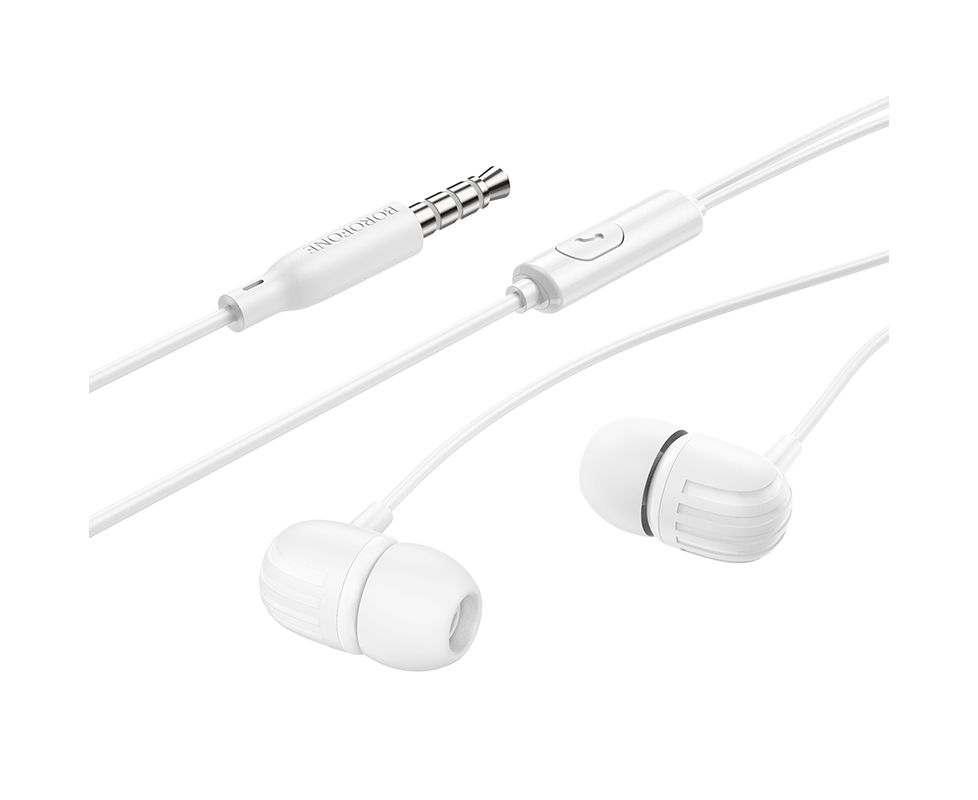 Наушники проводные Borofone BM77 с микрофоном оснащены динамиками с прекрасной акустической системой для качественного звука и поддерживают опцию управления звонками. Вставная конструкция обеспечивает необходимую шумоизоляцию, блокируя посторонние шумы. Гарнитура снабжена встроенным микрофоном – для общения не придётся держать в руках телефон. Вы можете использовать их с планшетом, телефоном и другими устройствами. Они маленькие и удобные, поэтому подходят как для повседневного использования, так и для того, чтобы брать их с собой в поездку. Разъем подключения AUX 3.5, длина кабеля 1.2м. Выполнены в двух цветах.