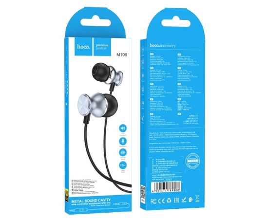 Стильные наушники Hoco M106 с микрофоном и кнопкой управления воспроизведением. Длина кабеля - 120 см. Оболочка кабеля - TPE, корпус наушников пластиковый. Наушники представлены в серебристом и сером цветах.