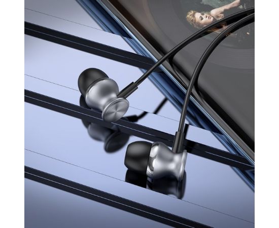 Наушники вакуумные AUX разъём с МК без рег.громкости длина 1.2м Hoco M106 (Metal Grey)