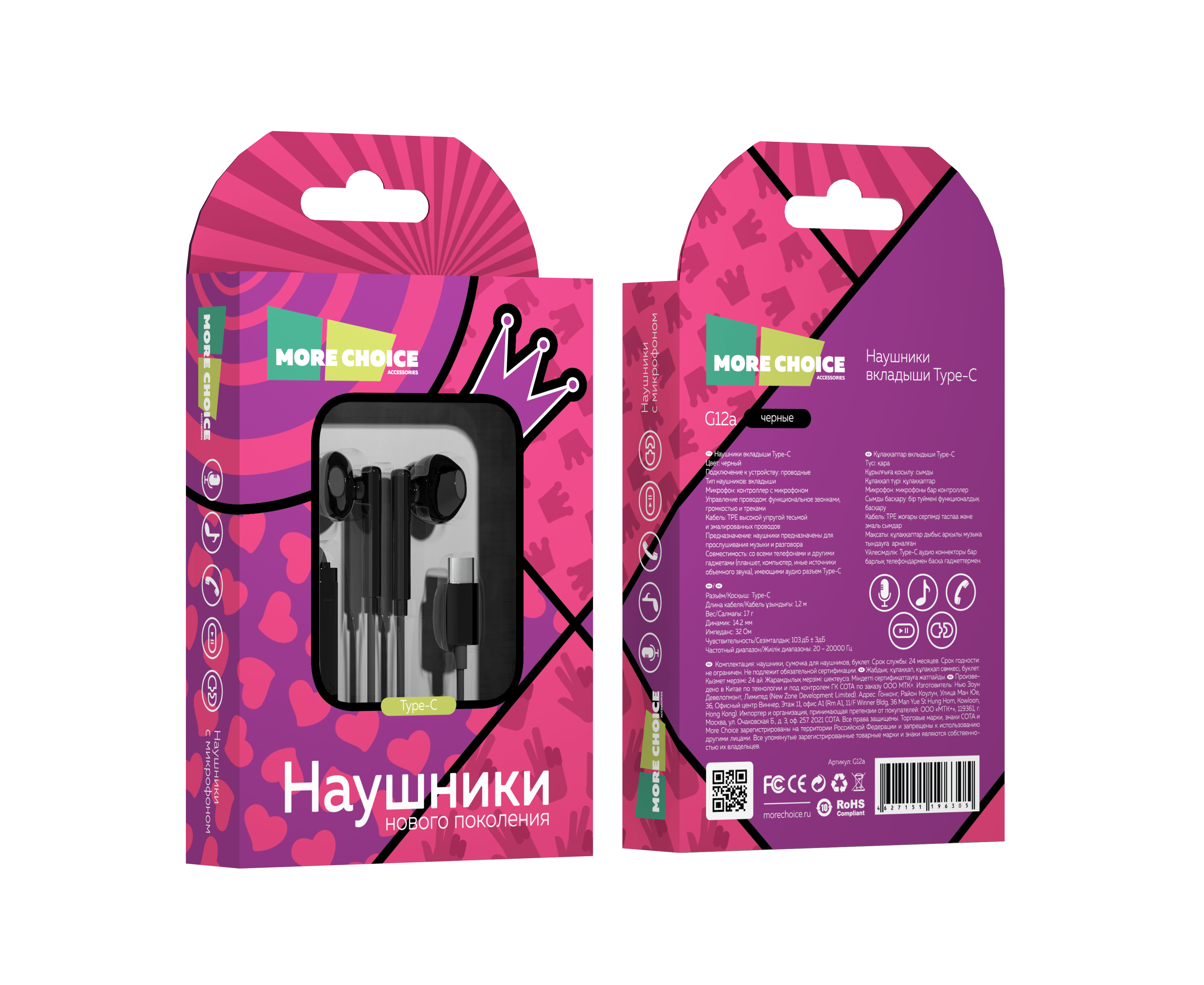 Наушники вкладыши Type-C разъём с МК и рег. громкости длина 1.2м More choice G12 (Black)