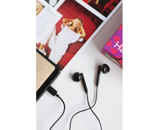 Материал: ABS-пластик, TPE, алюминиевый сплав Тип наушников: вкладыши, проводные Динамик: 14.2 мм Разъём: Type-C Длина кабеля: 1,2 м Пульт ДУ: микрофон, регулировка громкости, старт/пауза, ответ на звонок Комплектация: наушники, кольцо-держатель для смартфона, буклет. Цвет: White, Black