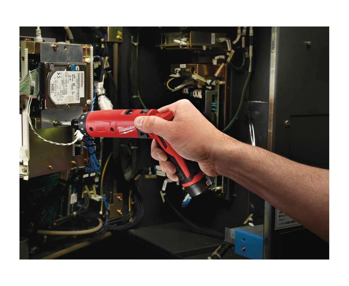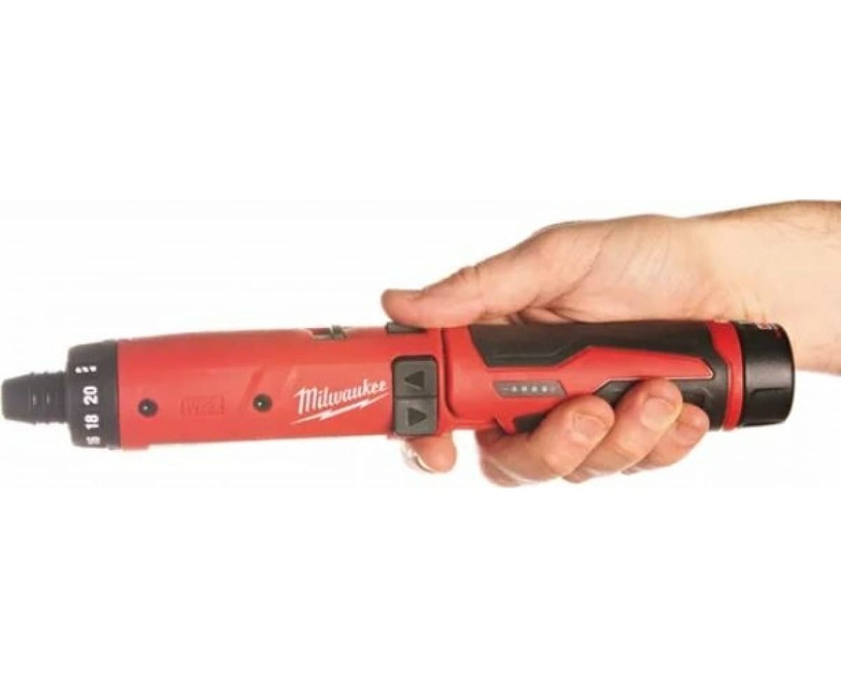 На корпусе аккумуляторной отвёртки Milwaukee M4 D-202B 4933440475 есть кольцо регулировки крутящего момента, которое даёт возможность быстро и просто выставлять необходимое для работы значение.