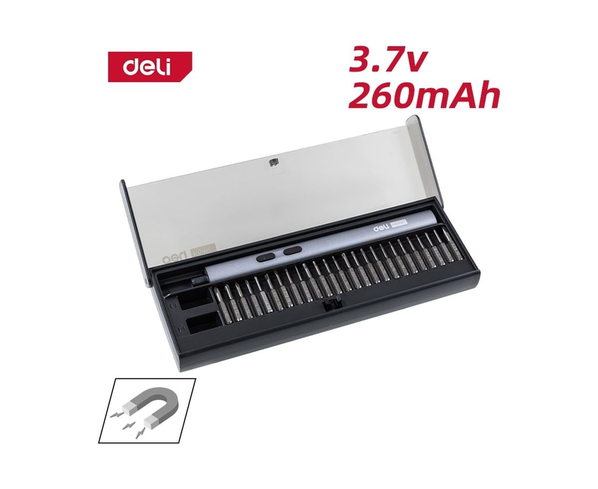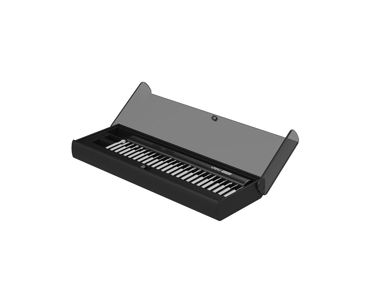 Отвертка аккумуляторная прецизионная Deli Home series Black (DY-DP04-1B1) 3,7В, 260мА*ч, 0,2/3Нм, 200об/мин, Type-C, набор бит 25 шт, кейс