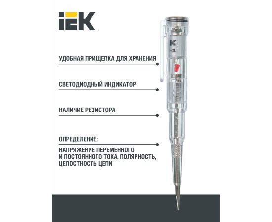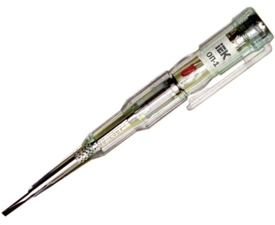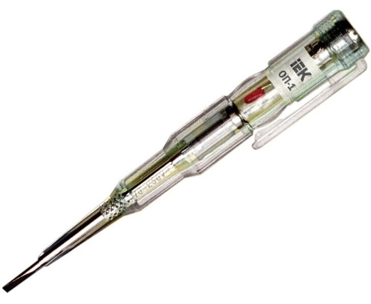 Отвертка-пробник IEK ОП-1 ИЭК TPR10 эффективных устройств, позволяющих быстро и безопасно проверять следующие параметры: напряжение переменного и постоянного тока, полярность, целостность цепи от 1,5 до 36 В контактным и бесконтактным способом.