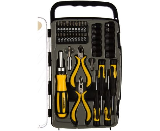 Набор насадок с реверсивной отверткой 41 предмет STAYER MASTER 25311-H41 используется в ремонтных работах. Поставляется в футляре, который снабжен широкой ручкой и прозрачной крышкой. Эргономичные рукоятки отверток способствуют более комфортному рабочему процессу. Набор содержит большое количество насадок, изготовленных из прочной хромованадиевой стали и закаленных по особой технологии - для долгого срока службы.