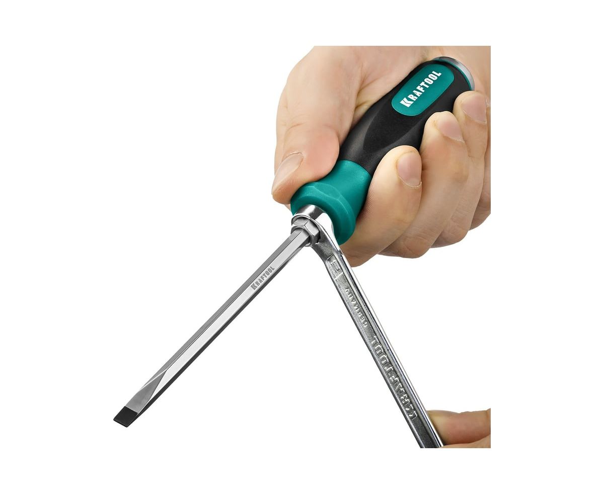 Ударная отвертка Kraftool "Impact", сквозной стержень из Cr-Mo-V стали 250033-5 позволяет работать даже со сложными крепежом.