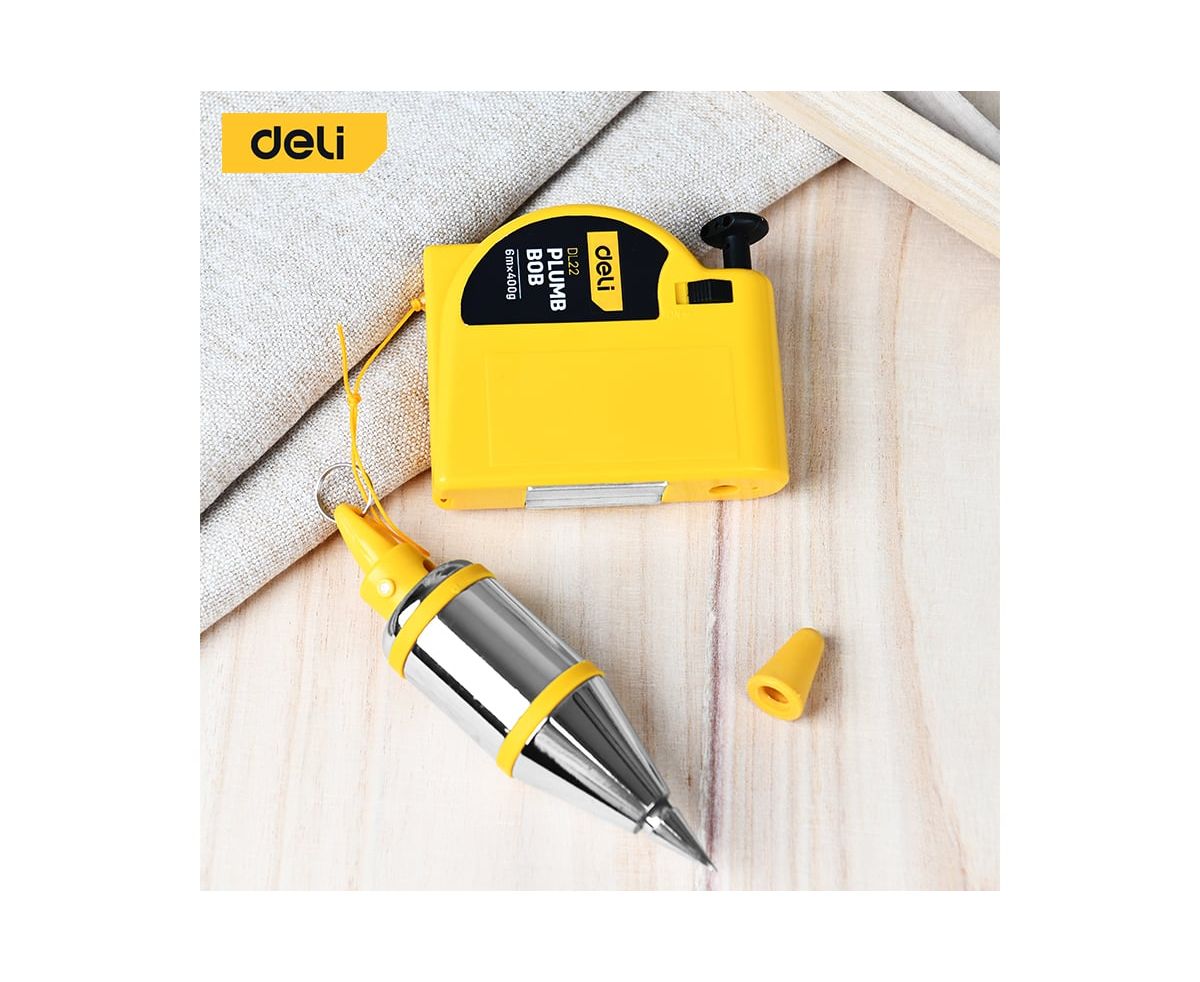 Отвес Deli DL22 конусный с магнитным держателем вес 400гр, длина нити 6м, автоматическое втягивание