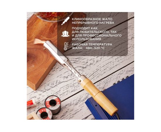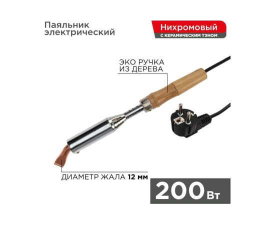 Паяльник ПД Rexant 12-0211 керамический нагреватель, 200Вт, 230В, деревянная ручка