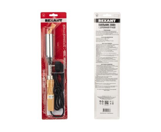 Технические характеристики REXANT ПД 220 В, 200 Вт, деревянная ручка 12-0211