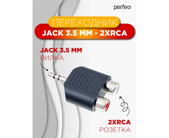 Переходник PERFEO Jack 3.5 мм (стерео) вилка - 2xRCA розетка (A7012)