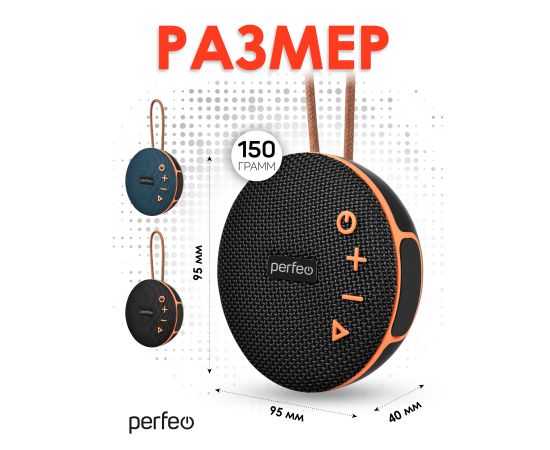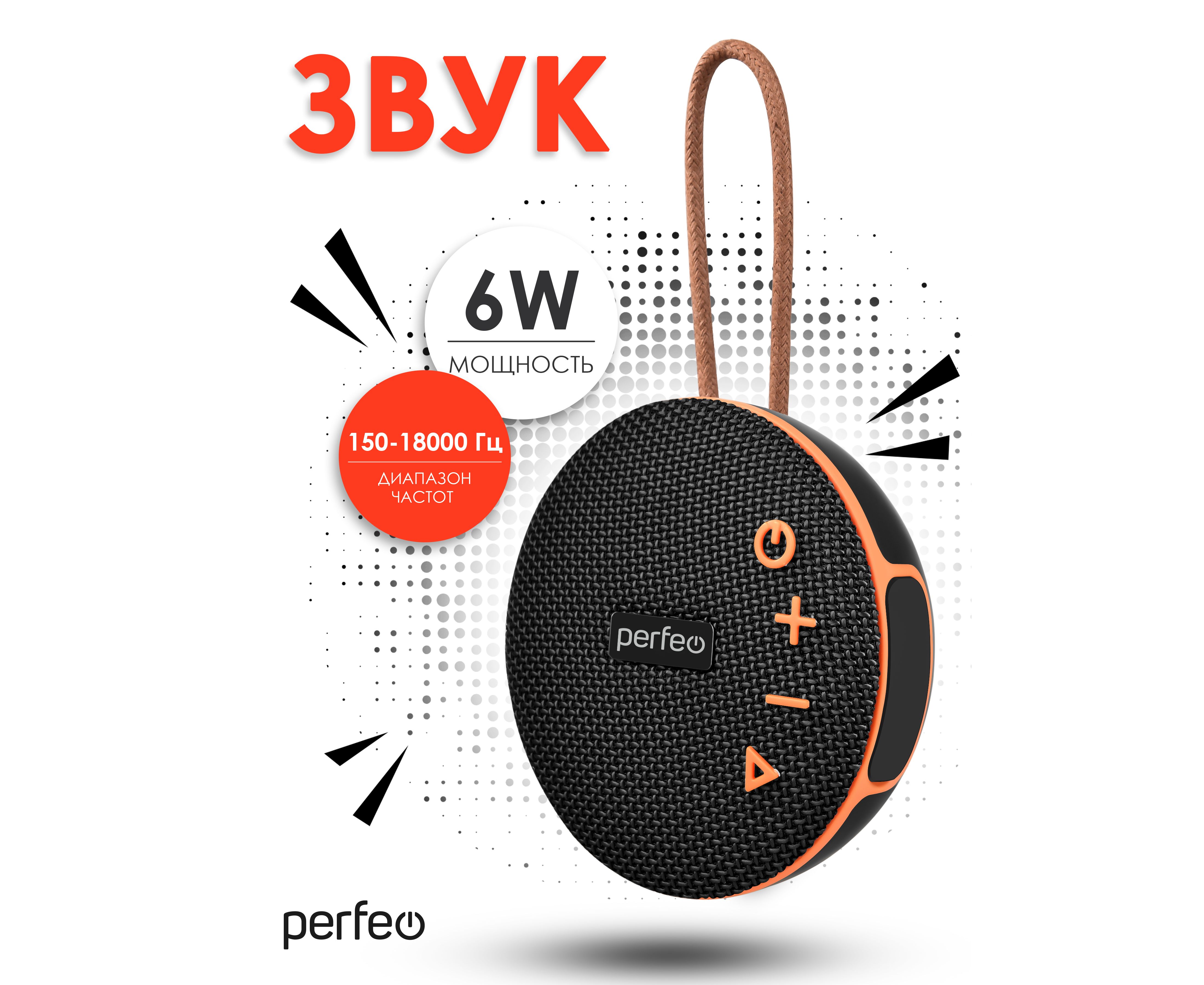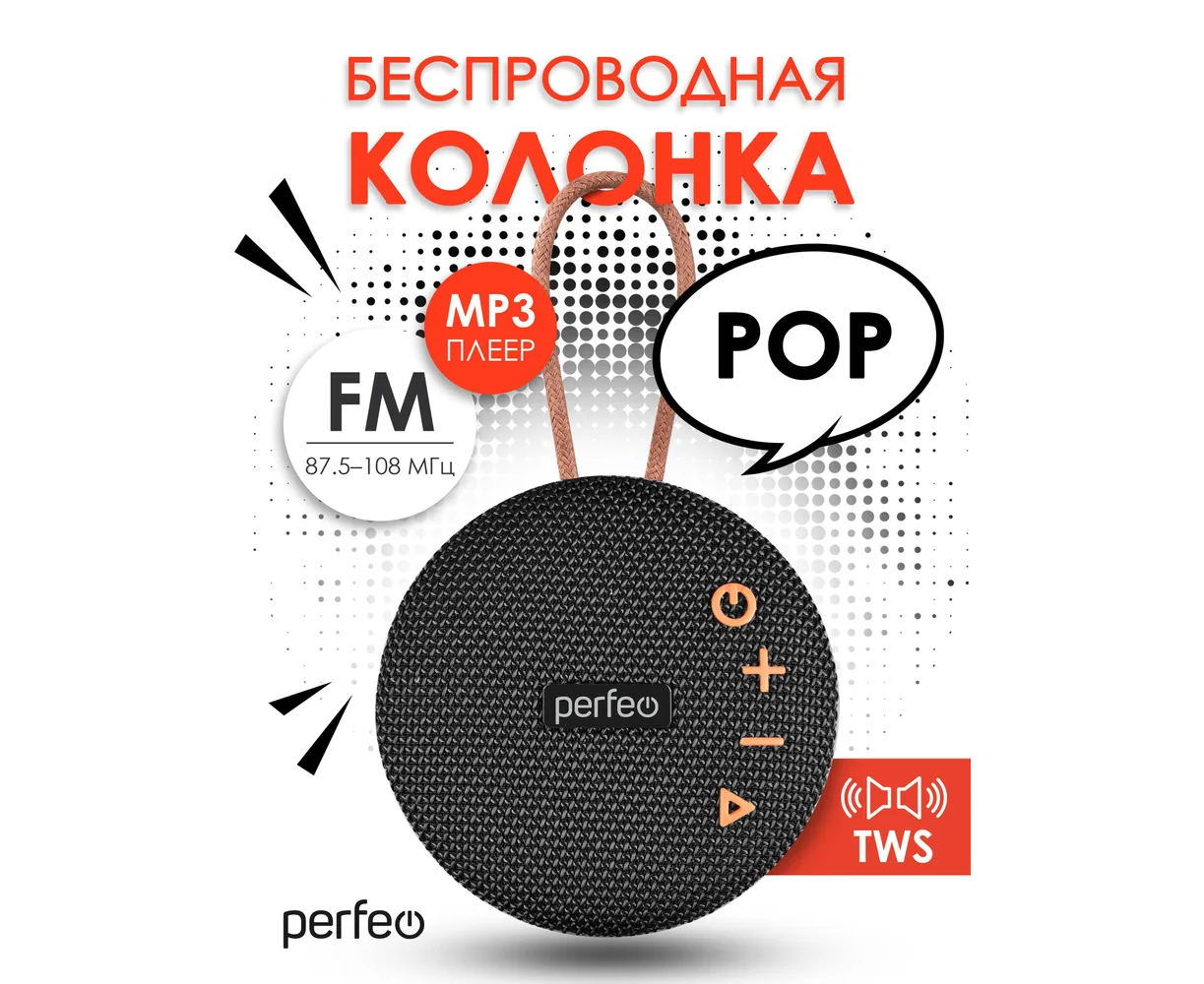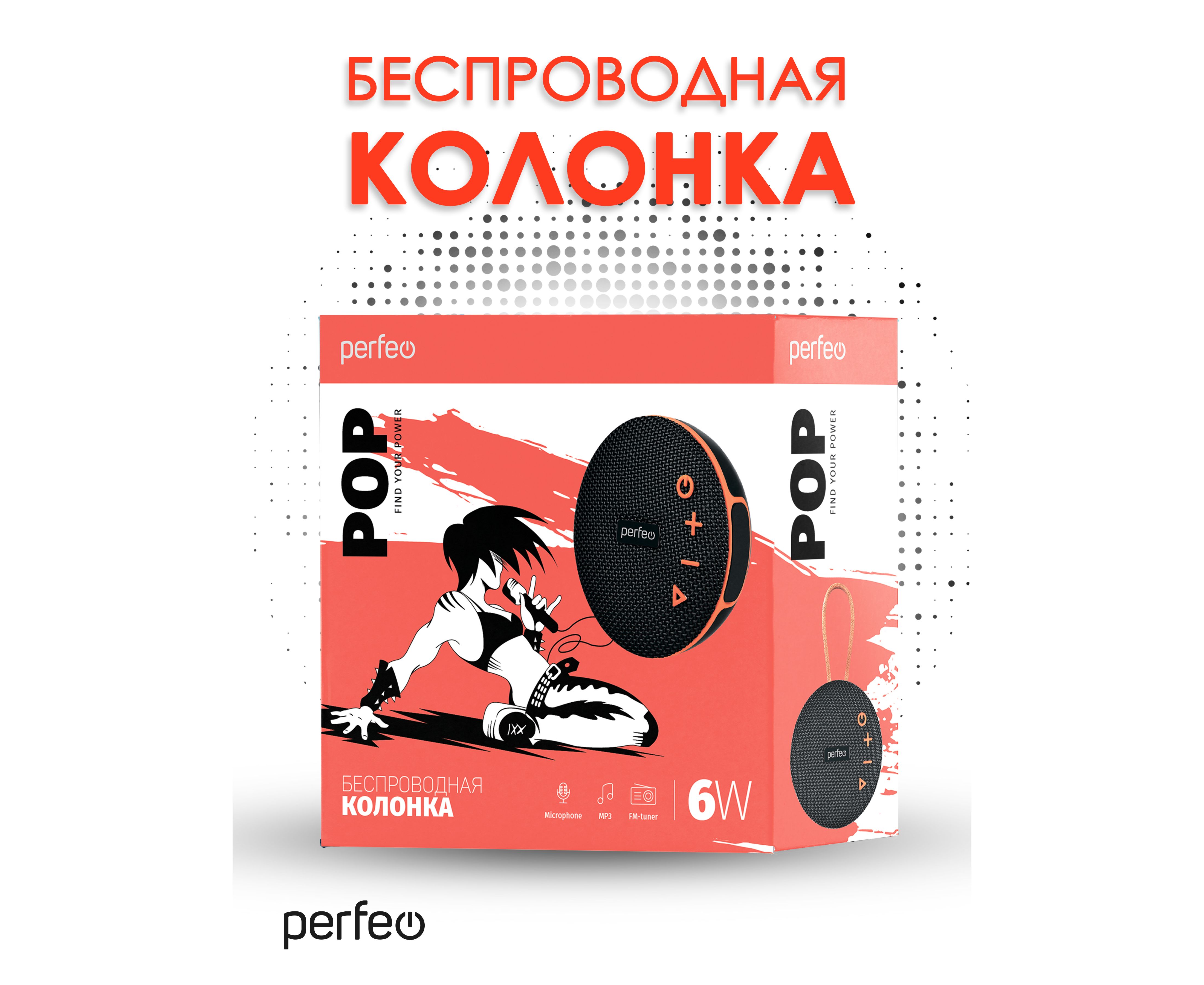 Perfeo Bluetooth-колонка "POP" FM, MP3 microSD/USB, AUX in, TWS, мощность 6Вт, 1200mAh, черная