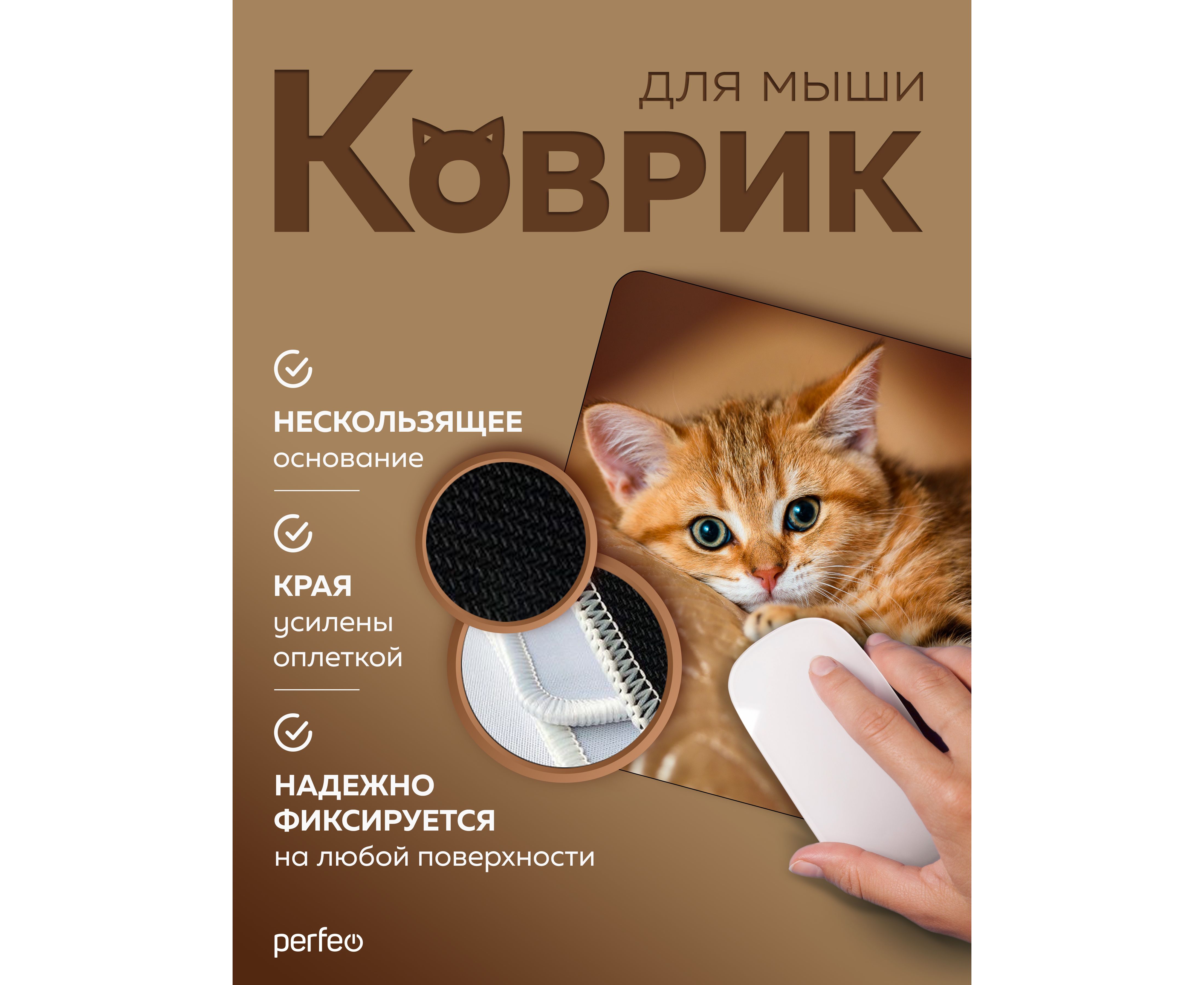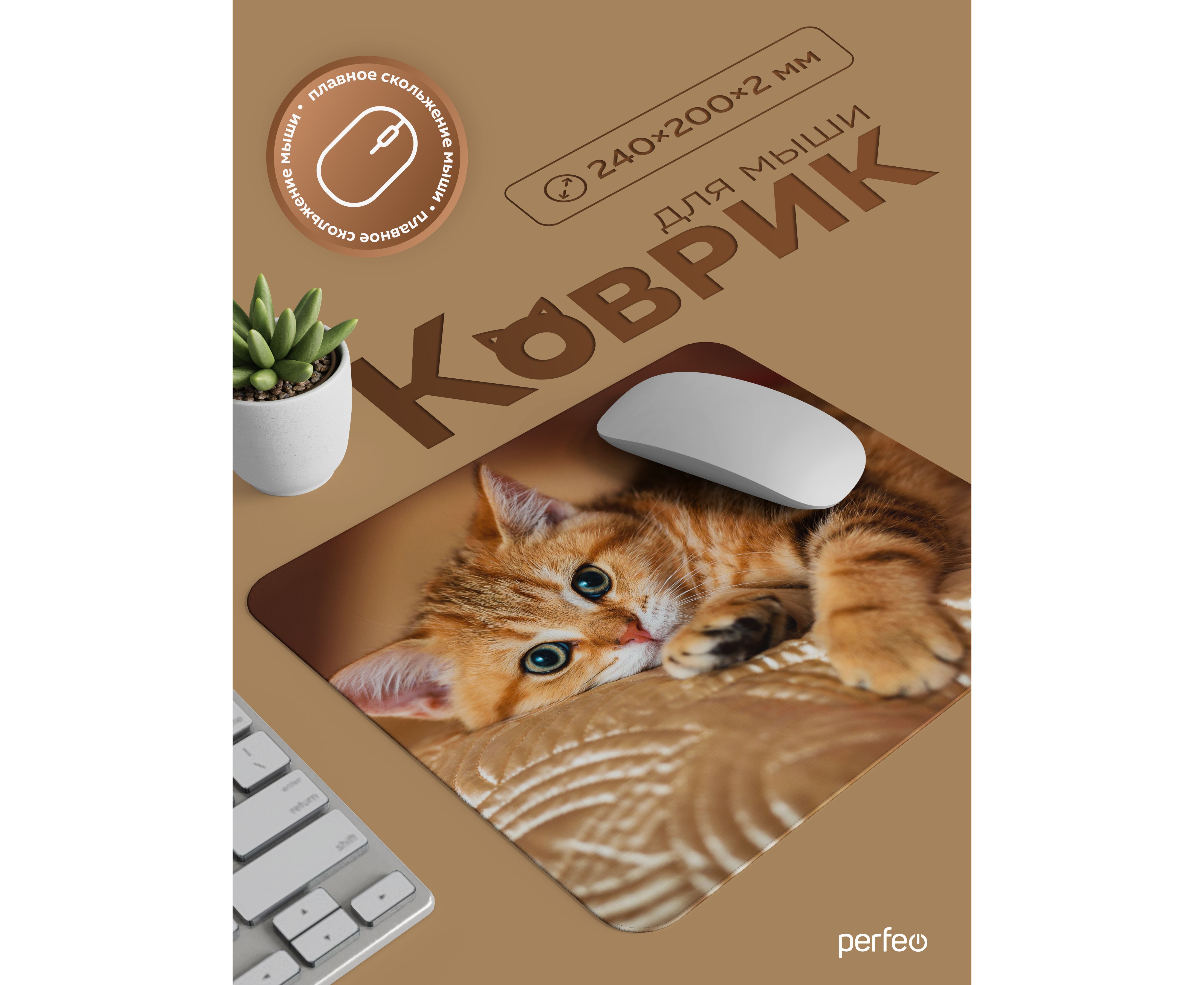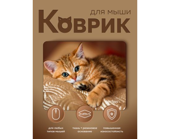 Perfeo Коврик для компьютерной мыши "Cat", Рис.44 (240*200*2 мм), ткань+резиновое основание