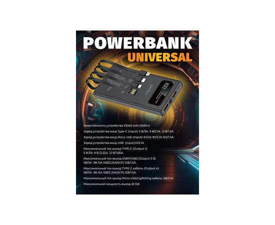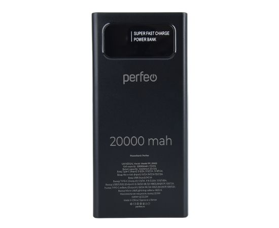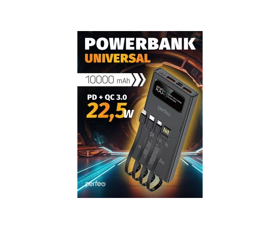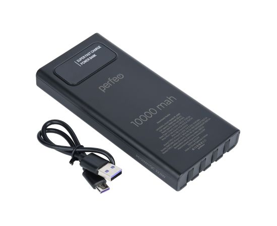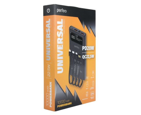 Perfeo Powerbank Universal 10000mah PD+QC3.0/In all/Out USB,Micro usb,Type-C,Lightnin,3А/22.5W/Black