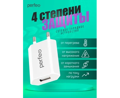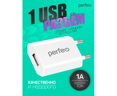 Сетевое зарядное устройство PERFEO с разъемом USB, 1А, белый (I4605)