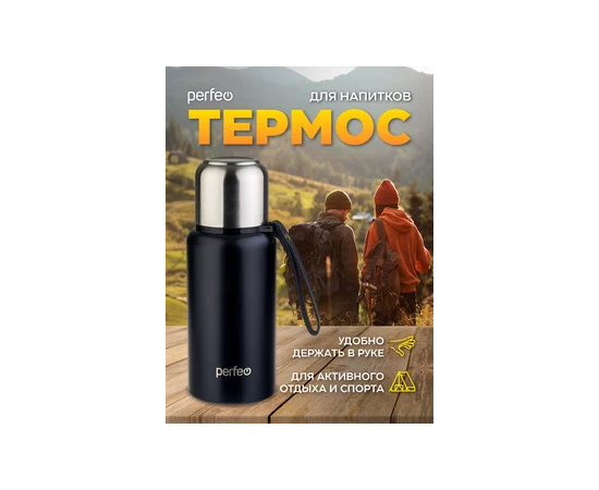 Термос для напитков PERFEO с глухой пробкой, ситечком, ремешком, объем 0,5 л., черный, (Арт. PF_C3704)