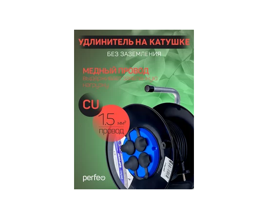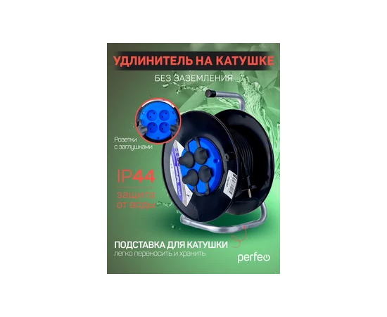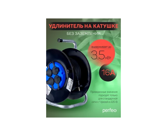 Удлинитель на катушке без заземления Perfeo "RU POWER" 50м 4гн 16А ПВС 2х1,5 IP44 (РБК16), (Арт. PF_C3369)