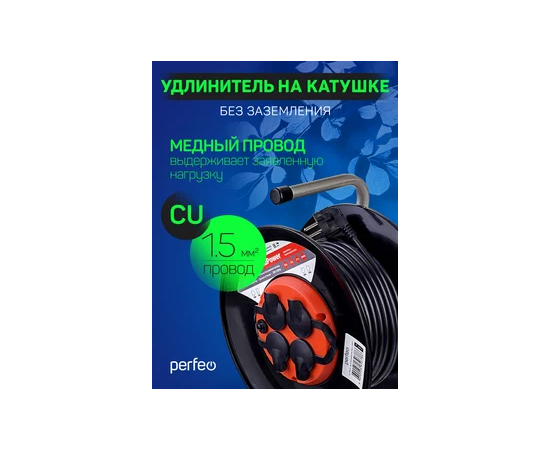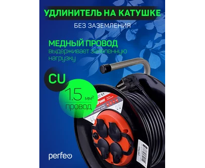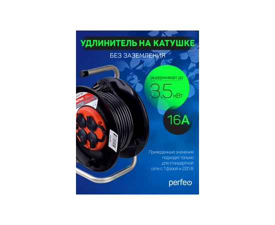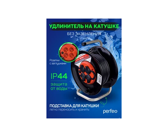 Удлинитель на катушке с заземлением Perfeo "RU POWER" 50м 4гн с т/з 16А ПВС 3х1,5 IP44 (РБК16), (Арт. PF_B4681)
